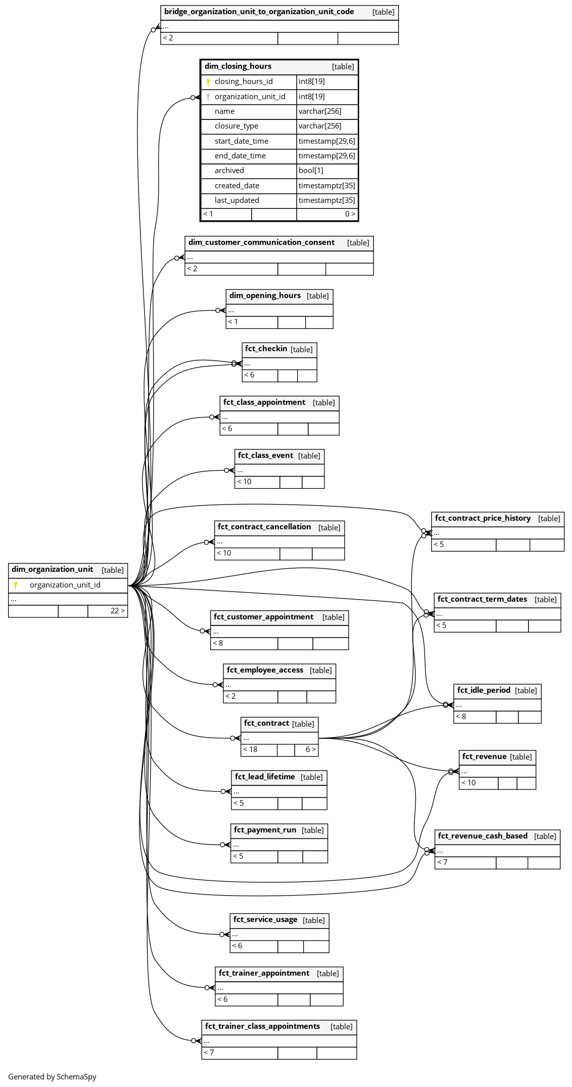 The organization unit (gym) that these closing hours apply to. |